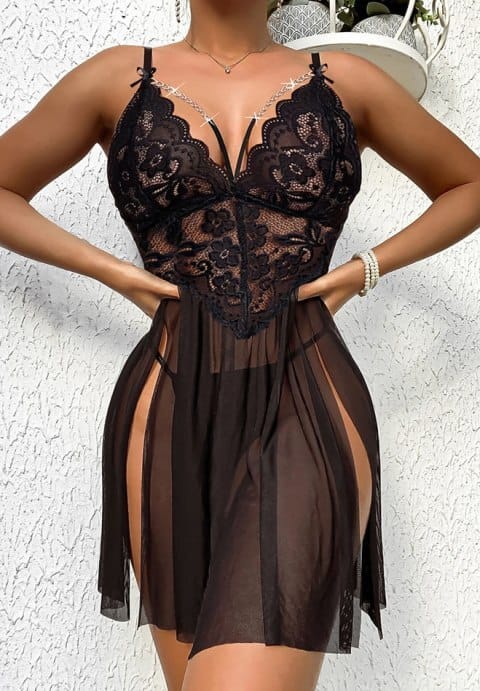 Mesh And Lace Babydoll And G-String